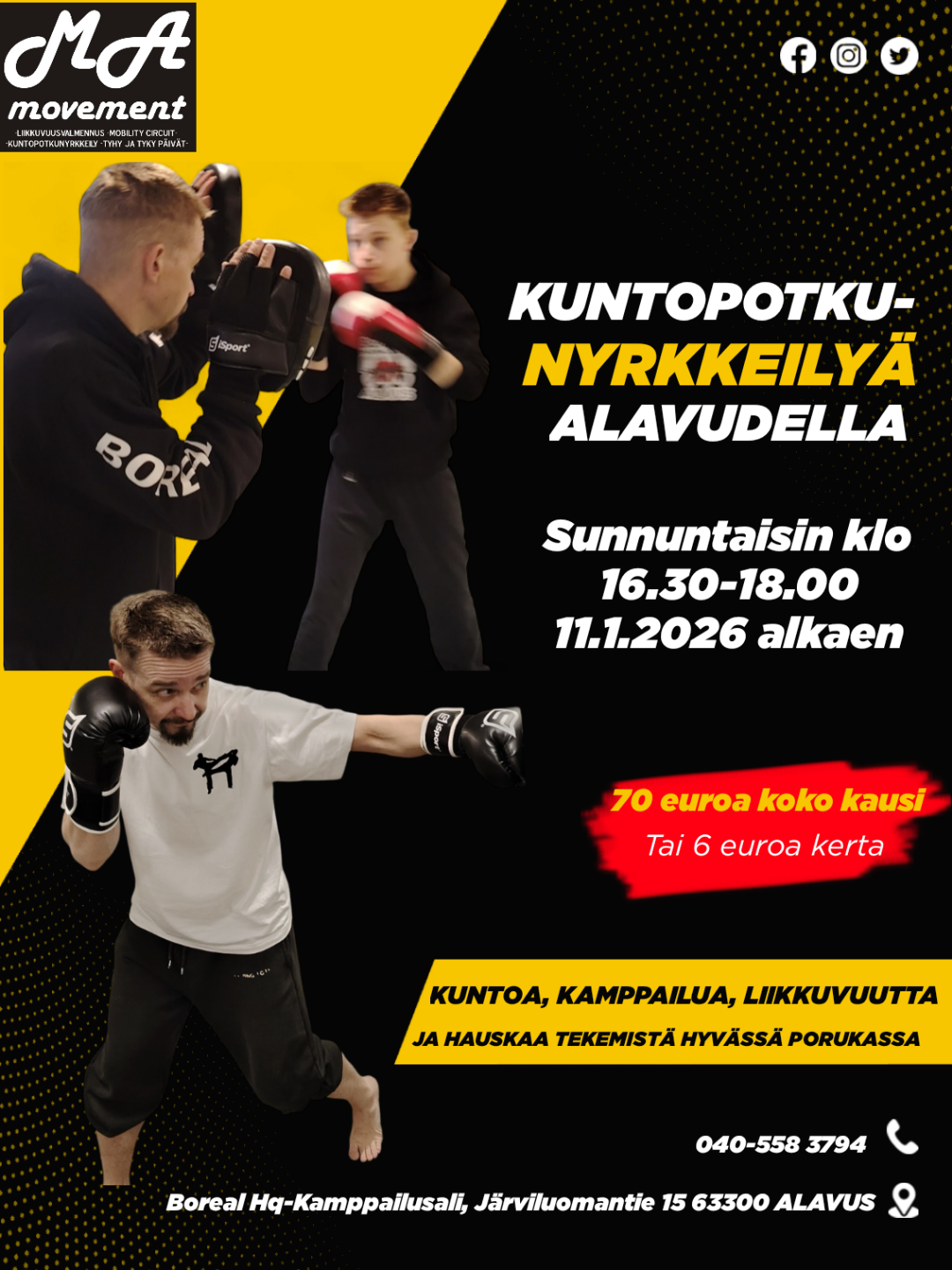 Kuntopotkunyrkkeily on tehokas ja hauska liikuntamuoto joka kuormittaa tasaisesti koko kehoa. Liikkuminen, lyönnit, potkut ja näiden yhdistelmät kehittävät sekä kuntoa kehon hallintaa. Kuntopotkisessa treenataan tosissaan mutta rennolla asenteella, eikä harrastaminen vaadittavaa aikaisempaa liikuntataustaa. Meillä käytettävä treenaa vain itseään varten
